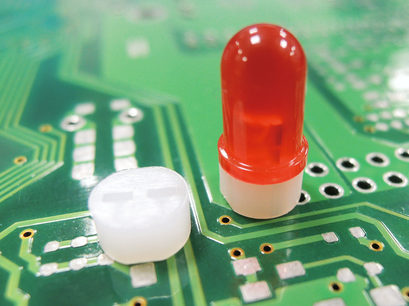 Bi-Lead LED Spacer Mount. The design keeps the 2 leads seperated from each other. Length 3.0mm. Nylon 66. Available in Natural and Black