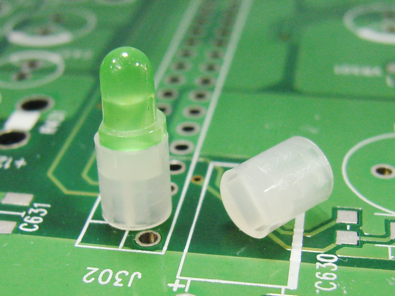 Bi-Lead LED Spacer Mount for LED size 3mm(T1) with a self-aligning feature to keep the leads separated. Length 15.0mm. Nylon 66. Available in Natural and Black