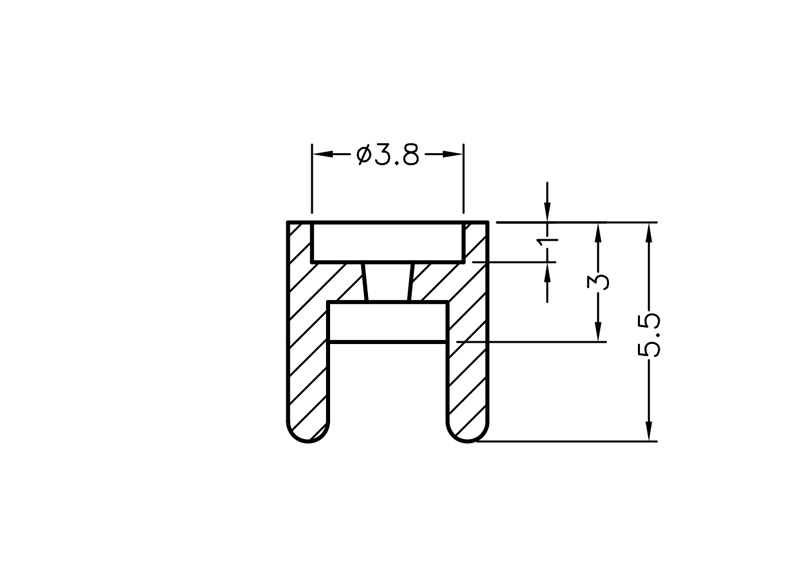 Bi-Lead LED Press-Fit Spacer Mount for LED size 5mm (T-1¾) with a self-aligning feature to keep the leads separated. Length 9.0mm. Nylon 66. Available in Natural and Black. The Press-Fit prevents shifting of the spacer.