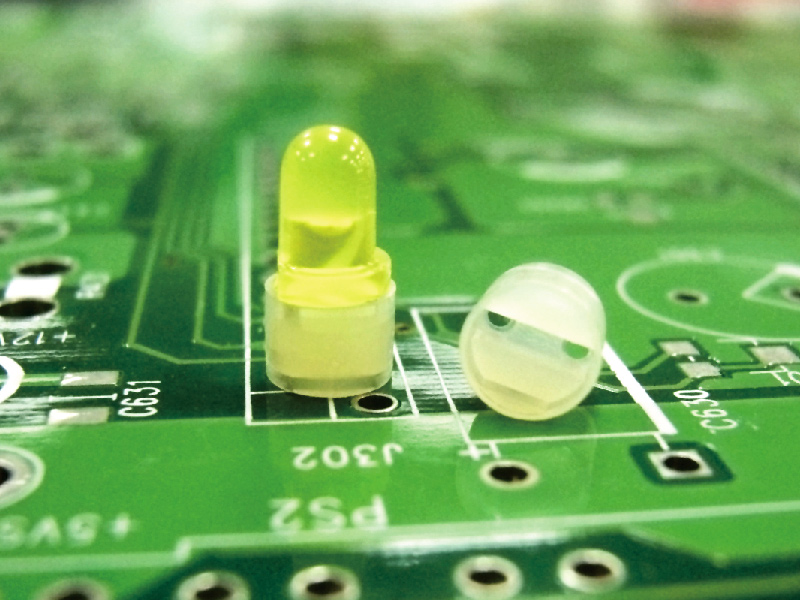 Bi- Lead LED Spacer for LED size 3mm (T-1). Length 3.0mm. Nylon 66. Available in Natural and Black. LED is partially captivated.