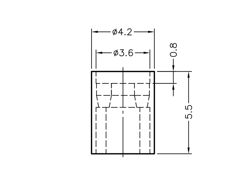 Bi- Lead LED Spacer for LED size 3mm (T-1). Length 5.5mm. Nylon 66. Available in Natural and Black. LED is partially captivated.