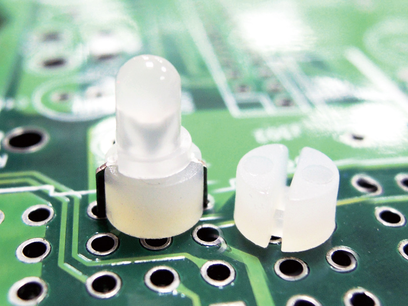 Tri-Lead LED Spacer Mount for LED size 3mm (T-1). The design keeps the 3 leads seperated from each other. Length 3.0mm. Nylon 66. Available in Natural and Black