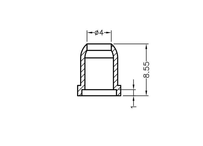 Silicone Rubbber Panel Rear Mount LED cover for 5mm (T-1¾) LED. Height 8.55mm. Color Black
