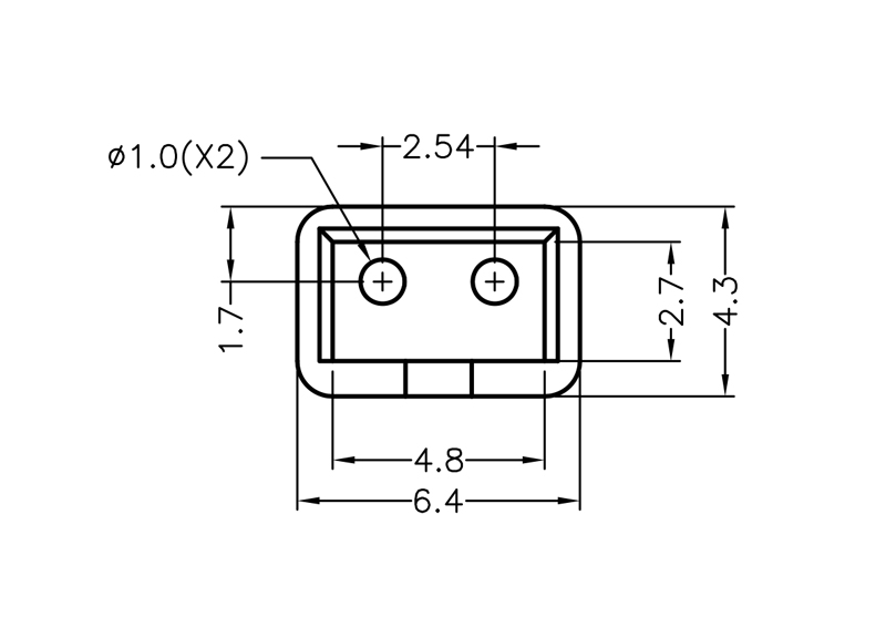 Press-Fit LED Spacer Support for a rectangular LED. Height 5.4mm. Material Nylon 66. Available in Natural and Black. Rectangular LED is fully captivated. The Press-Fit prevents shifting of the spacer.