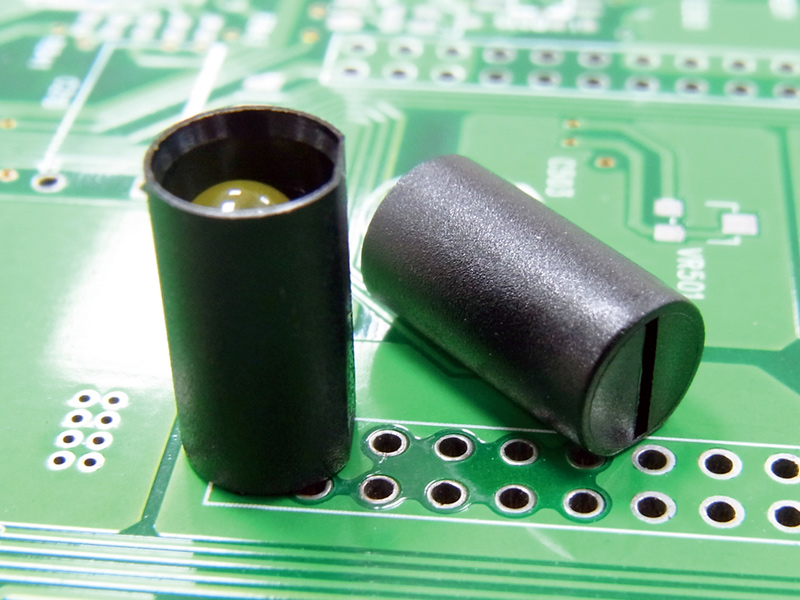LED Spacer Mount for LED size 5mm (T-1¾). Height 12.5mm. Material Nylon 66. Available in Natural and Black. LED is captivated.