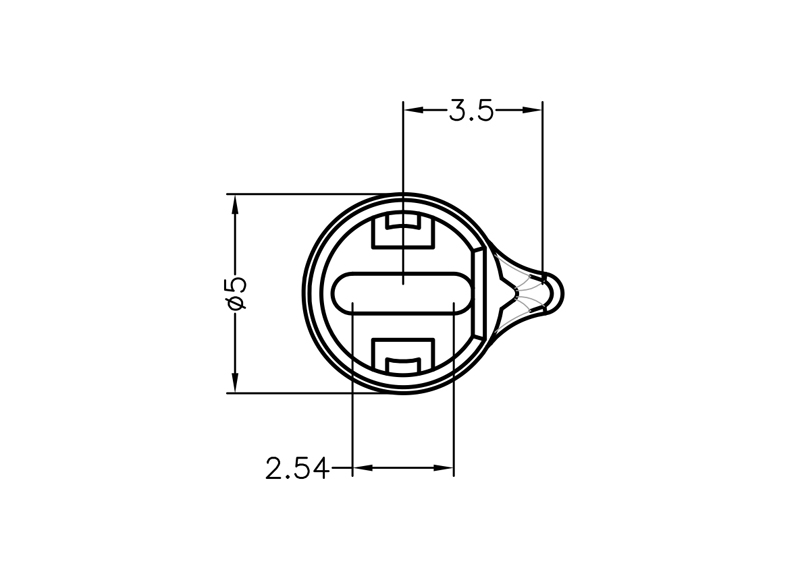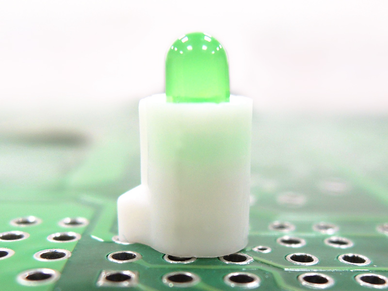 Bi-Lead LED Press-Fit Spacer Mount for LED size 3mm (T-1). Length 8.5mm. Nylon 66. Available in Natural and Black. The Press-Fit prevents shifting of the spacer.LED is partially captivated.