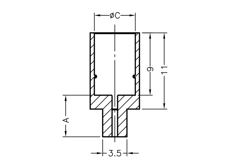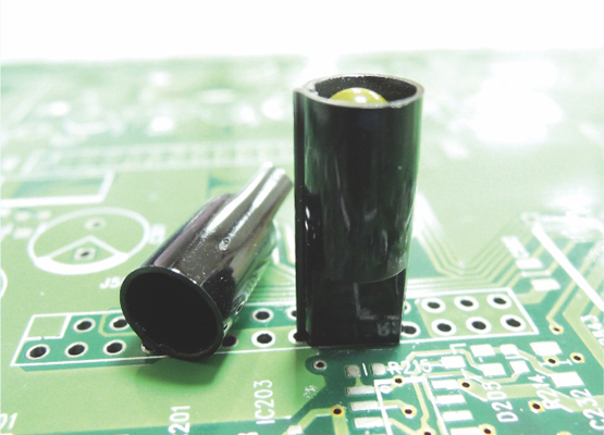 LED Spacer Mount for LED size 5mm (T-1¾). Height 2.0mm. Material Nylon 66. Available in Natural and Black. LED is captivated.