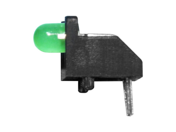 LED Support PA66 Right Angle PCB Mount for LED size 3mm(T-1) with 2 Centerpins. Centerline 6.0mm. The 2 Centerpins keep the holder in place and relieves the stress on the leads of the LED . LED’s shown for Demo not included in holder
