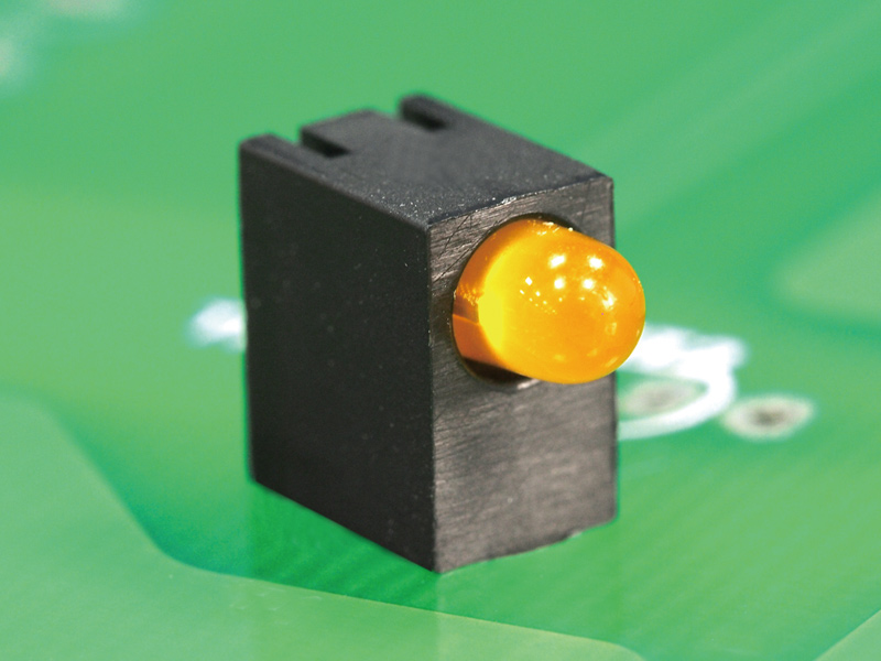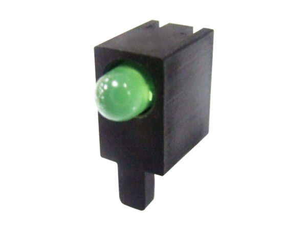 LED Holder PA66 Right Angle PCB Mount for LED size 3mm(T-1) with Centerpin. Centerline 5.0mm. The Centerpin keeps the holder in place and relieves the stress on the leads of the LED . LED’s shown for Demo not included in holder