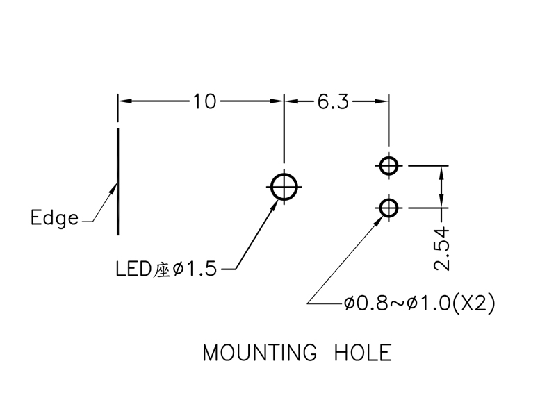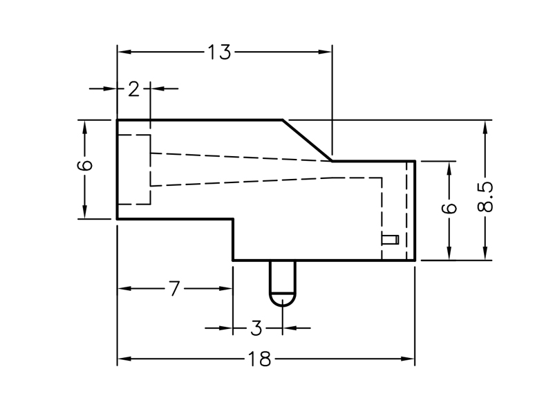 LED Holder PA66 Right Angle PCB Mount for LED size 3mm(T-1) with Centerpin. Centerline 6.0mm. The Centerpin keeps the holder in place and relieves the stress on the leads of the LED . LED’s shown for Demo not included in holder