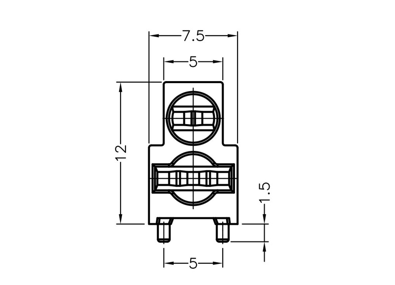 Right Angled vertical 2 stack LED holder for T-1 (3mm) LED with 2 Centerpins. First stack is designed for 3 leads. Centerline bottom LED 3.85mm. Centerline top LED 8.94mm. The Centerpin keeps the holder in place and relieves the stress on the leads of the LED. LED’s shown for Demo not included in holder