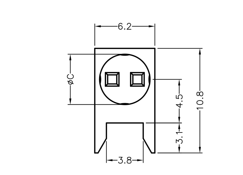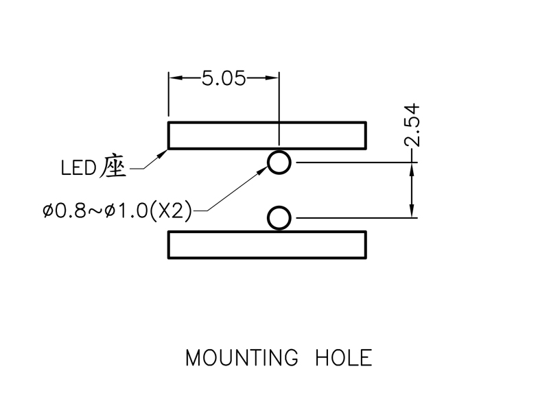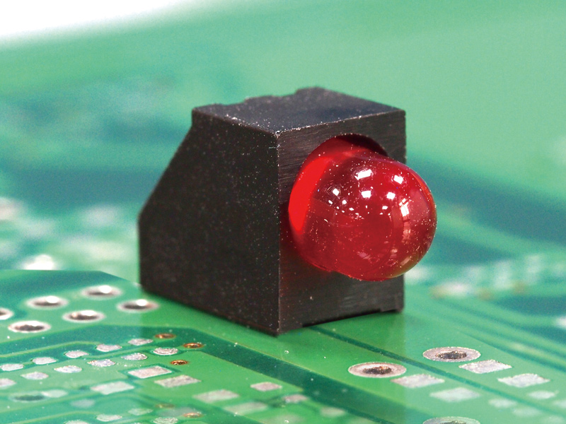 LED Support PA66 Right Angle PCB Mount for LED size 5mm(T-1¾). with 2 Centerpins. Centerline 4.5mm. The 2 Centerpins avoid the holder from turning and relieves the stress on the leads of the LED . LED’s shown for Demo not included in holder