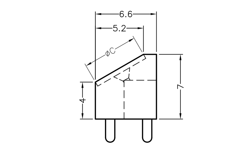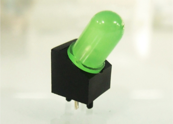 LED Support PA66 30 degree angle PCB Mount for LED size 5mm(T-1¾). with 2 Centerpins. The 2 Centerpins avoid the holder from turning and relieves the stress on the leads of the LED . LED’s shown for Demo not included in holder