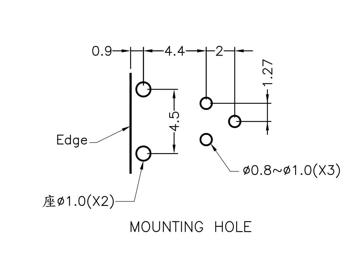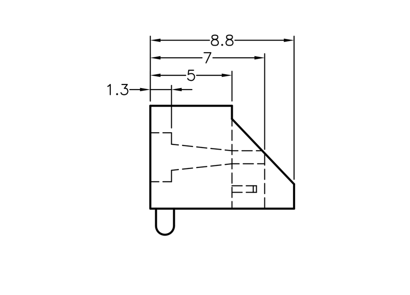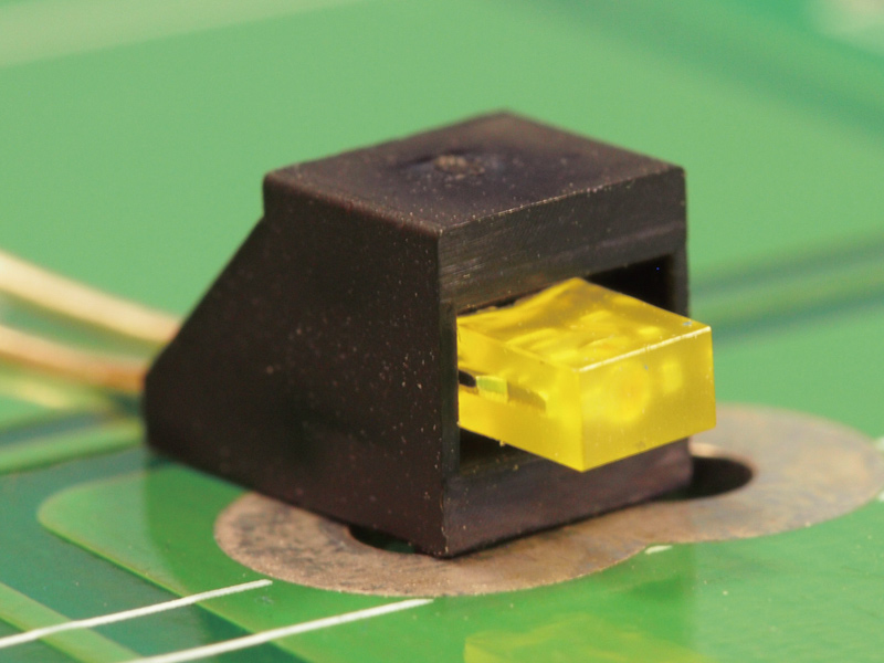 LED Holder Right Angle PCB Mount for 3 lead Rectangular LED size 5 x 2mm. with 2 Centerpins. Centerline 3.15mm. The 2 Centerpins avoid the holder from turning and relieves the stress on the leads of the LED . LED’s shown for Demo not included in holder