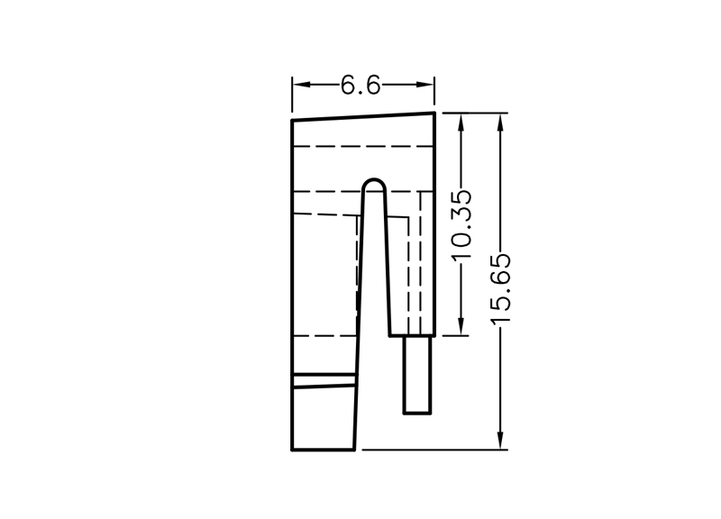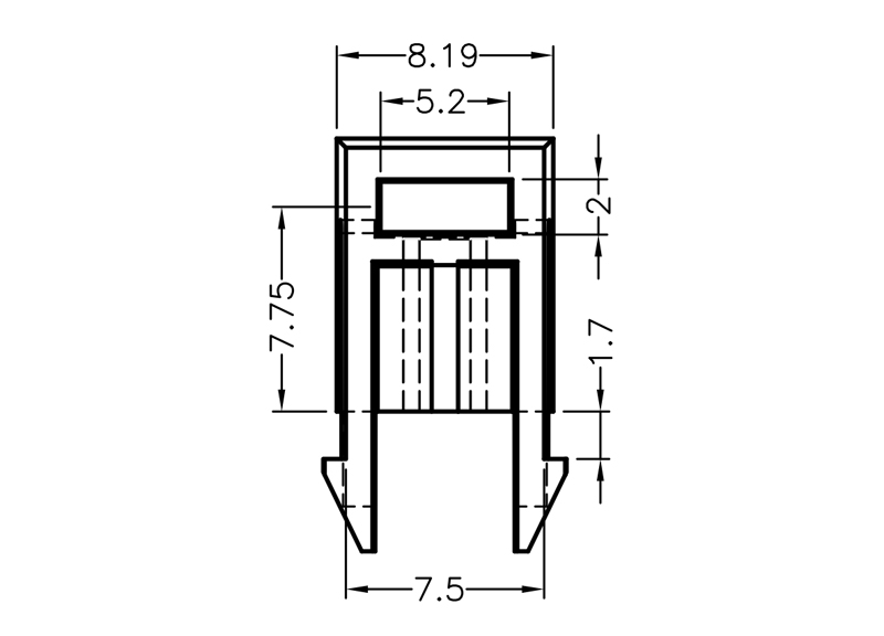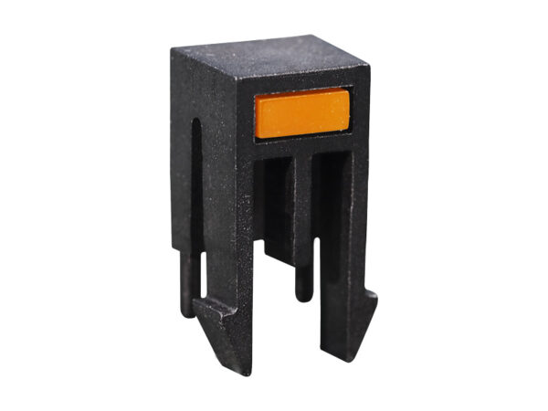 LED Holder Right Angle PCB Mount for Rectangular LED size 5 x 2mm. with 2 Locking & 2 Centerpins. Centerline 7.75mm. The 2 Locking & Centerpins avoid the holder from turning and relieves the stress on the leads of the LED . LED’s shown for Demo not included in holder