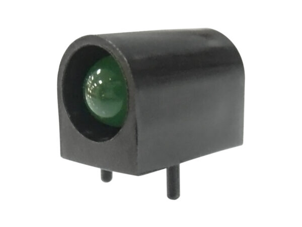 LED Holder Right Angle PCB Mount for 2 & 3 lead LED size 5mm(T-1¾). with 2 Centerpins. Centerline 5.0mm. The 2 Centerpins avoid the holder from turning and relieves the stress on the leads of the LED . LED’s shown for Demo not included in holder