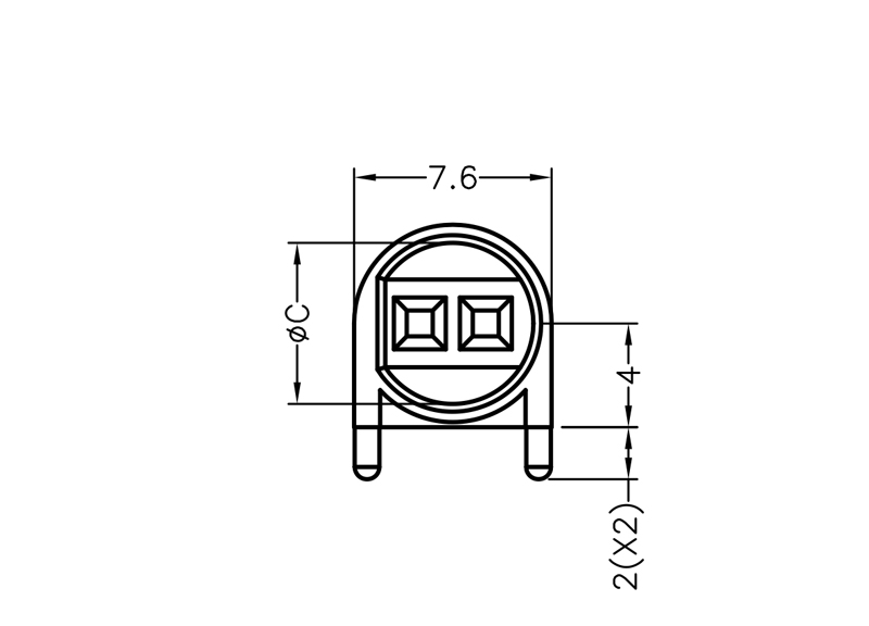 LED Holder Right Angle PCB Mount for LED size 5mm(T-1¾). with 2 Centerpins. Centerline 4.0mm. The 2 Centerpins avoid the holder from turning and relieves the stress on the leads of the LED . LED’s shown for Demo not included in holder