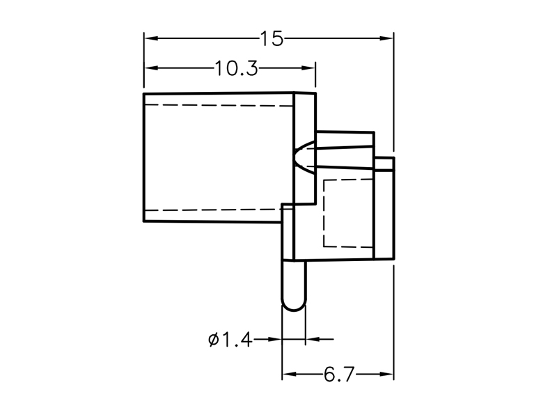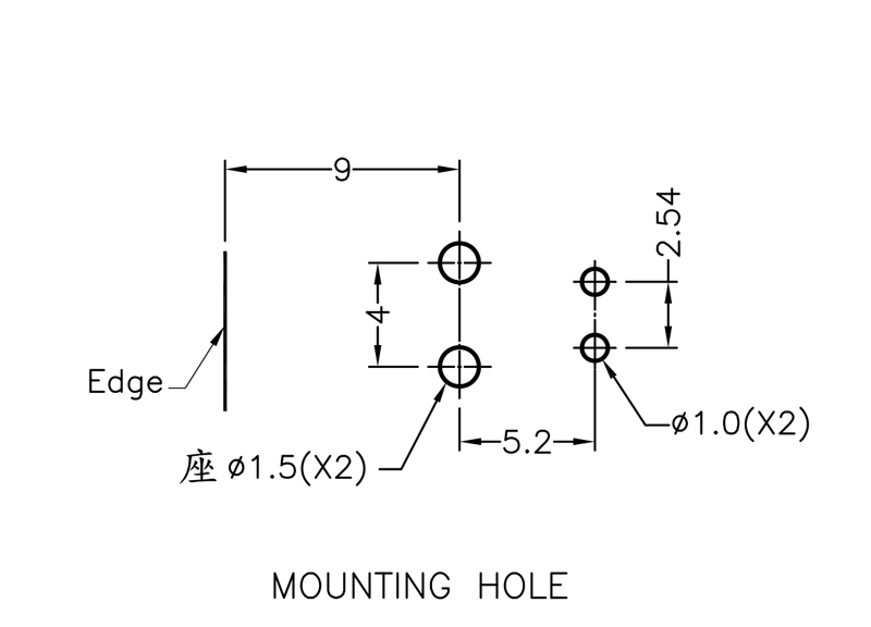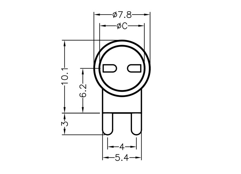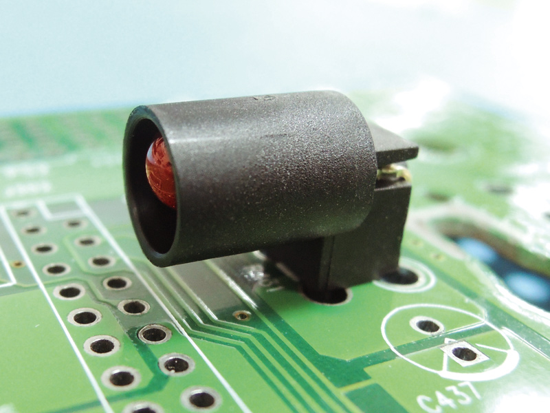 LED Holder Right Angle PCB Mount for LED size 5mm(T-1¾). with 2 Centerpins. Centerline 6.2mm. The 2 Centerpins avoid the holder from turning and relieves the stress on the leads of the LED . LED’s shown for Demo not included in holder