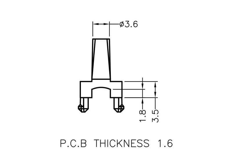 Vertical SMD Press-Fit 3 Wide LED Light Pipe. Flat Lens Size Ø3.6mm. Material Polycarbonate.