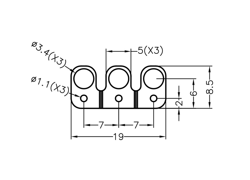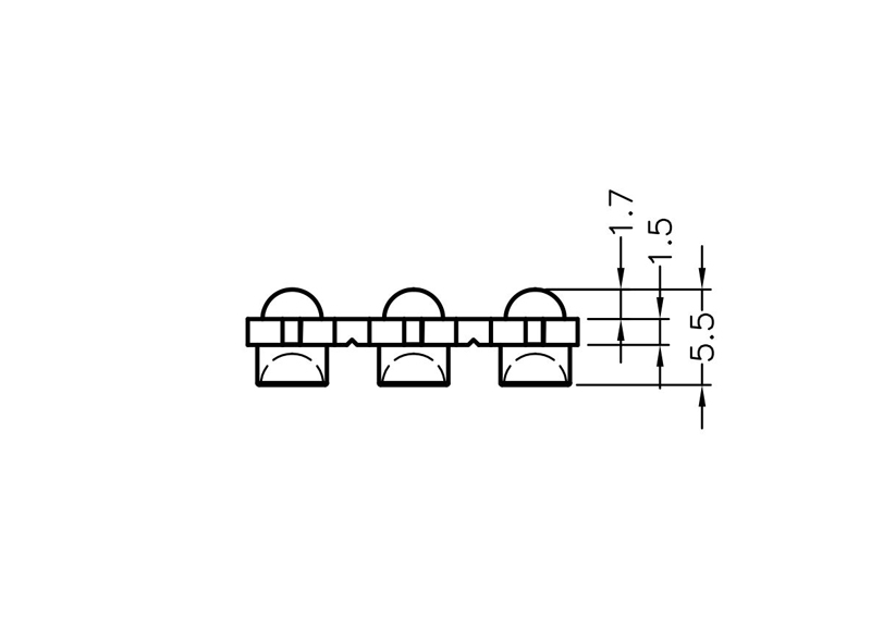 Triple Vertical Light Pipe Domed 3.4mm Lens size. Centerline 7.0mm. Lenght 19.0mm.Material Polycarbonate. Helps protect sensitive components from ESD