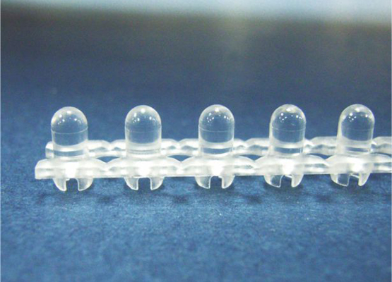 4 segment Rear Domed LED Mount available on breakable strip. Material Polycarbonate. To keep LED’s at a same pith of 6mm.