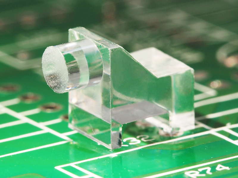Right Angled 90° Press-Fit SMD LED Light Pipe with 3.0mm Round Flat Lens. Material Polycarbonate. Can be affixed by Thermal Compression or Glue