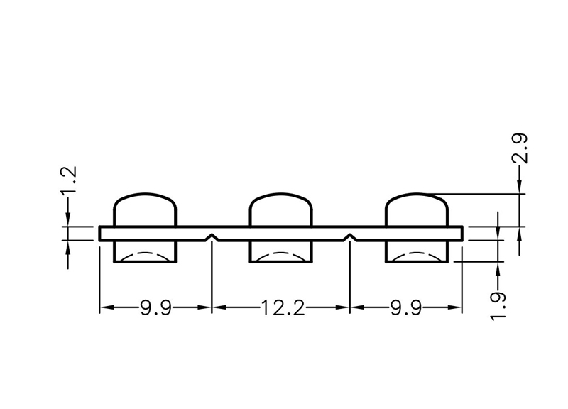 Triple Vertical Light Pipe Flat 5.4mm Domed Lens size. Centerline 12mm. Lenght 32mm.Material Polycarbonate. Helps protect sensitive components from ESD