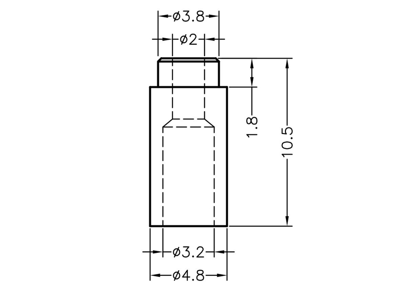 Light Pipe Flat.3.8mm Lens size. Panel Rear Mount Ø4.8mm. Length 8.7mm. Material Polycarbonate. Helps protect sensitive components from ESD. Additional gluing increases the holding force.