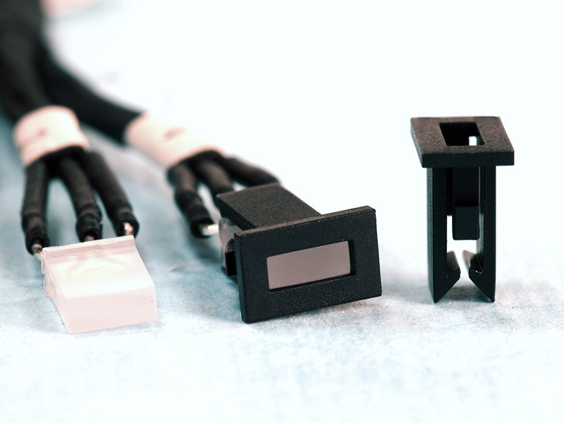 Panel Snap-Fit Rectangular LED holder for Rectangular LED 5x2mm. Nylon 66. Available in Natural and Black