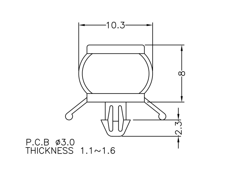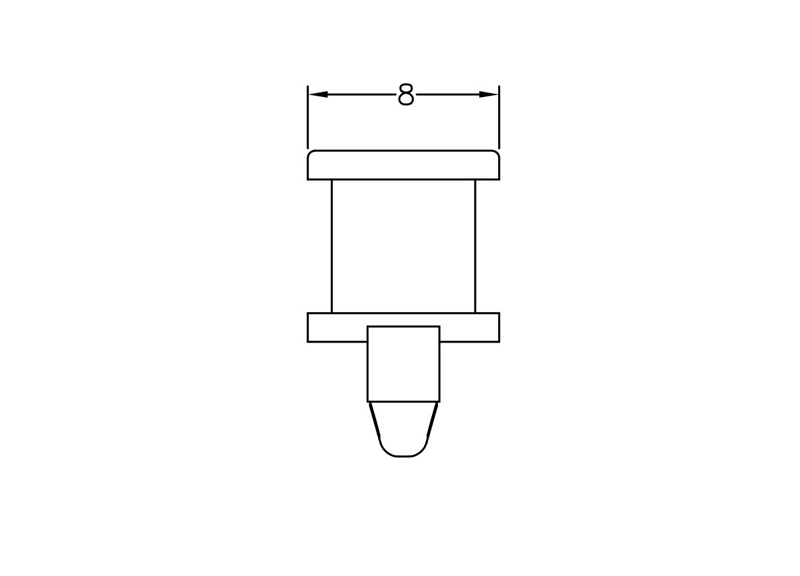 Cushion snap lock push spacer rest support for a 3 mm chassis hole. Also available with 3M tape on rest support. Standoff height is 8 mm.