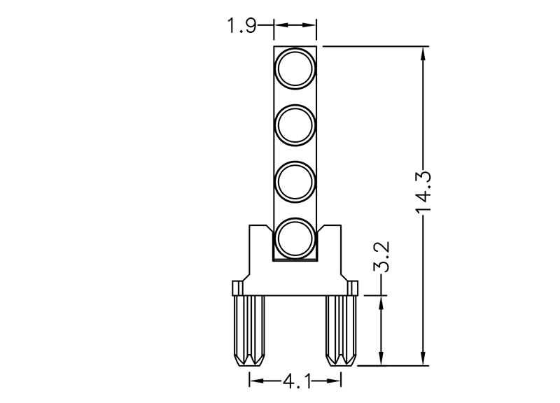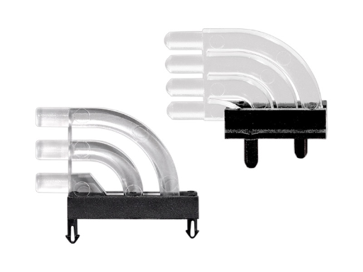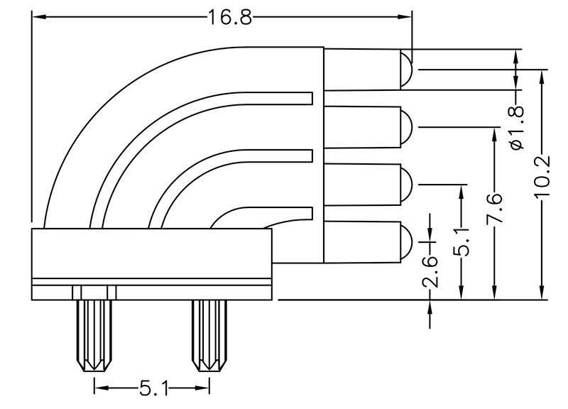 Right Angled 90° 4-Level PCB Press Fit single station Light Pipe Assenbly for SMD Led’s. Material Polycarbonate. Domed Lens dia. Ø1.8mm. Assembly consists of Nylon Mask Holder (Part# LPH-3) and Light Pipe (Part# LP-3)