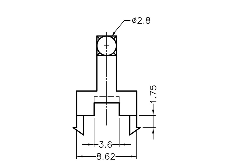 Right Angled 90° PCB Snap-Fit Mount Light Pipe. Round Flat Lens Ø2.8mm. Center-to-Board Height 10.0mm. Polycarbonate (PC) Material. Suitable for a single SMD-LED