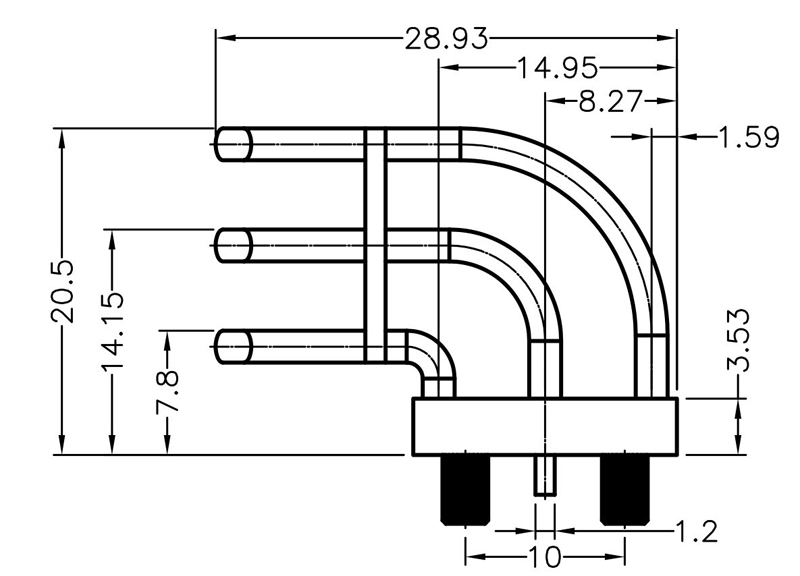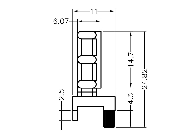 Right Angled 90° 3-Level PCB Press Fit single station Light Pipe Assenbly for SMD Led’s. Material Polycarbonate. Squared Lens.