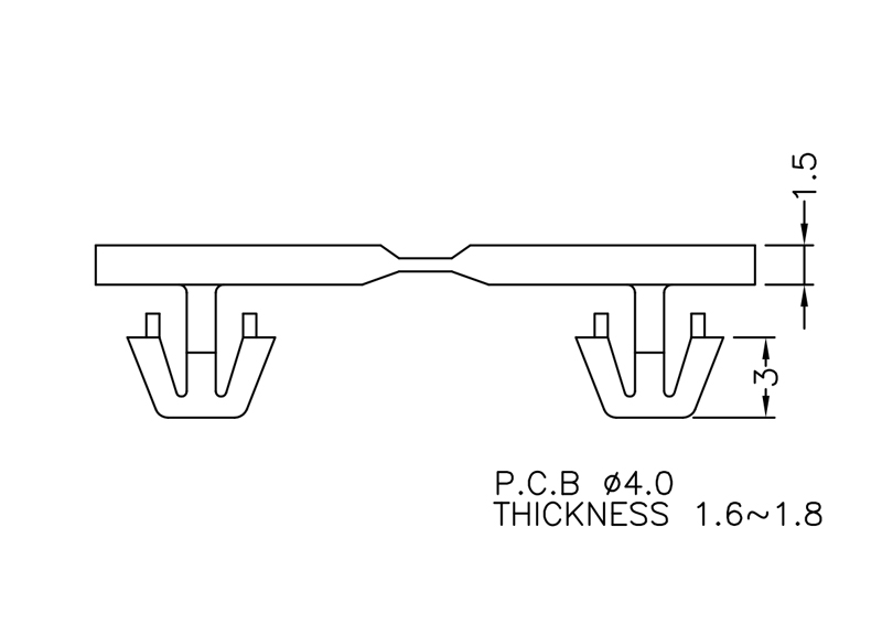 PCB Hinge snap lock. Snap lock dia.Ø4.0mm. Thickness 1.6-1.8mm. Material Nylon 66. Color Natural/Black