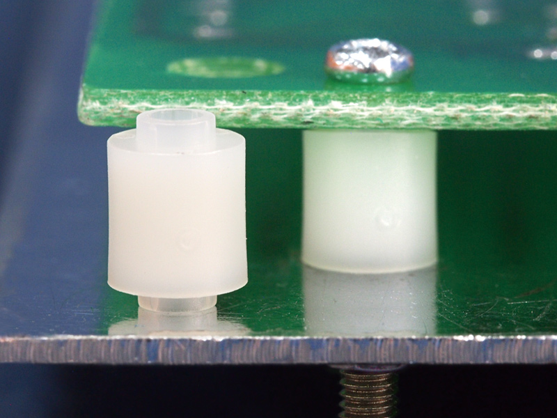 Round Spacer Dual Snap in. Snap in dia. Ø 3.5mm. IDxH 2.2×6.2mm. Material Nylon 66. Color Natural/Black