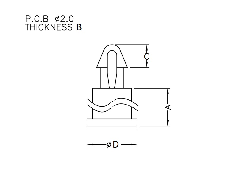 Push spacer rest support provided with a snap lock for a 2 mm mounting hole. Standoff height 1.8 mm.