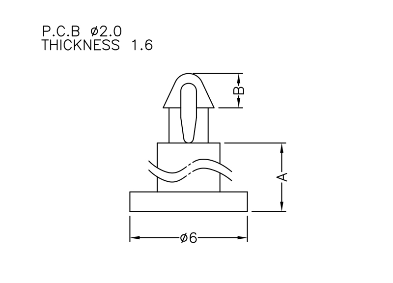 Rest support provided with a snap lock for a 2 mm mounting hole. Standoff height is 2.7 mm.