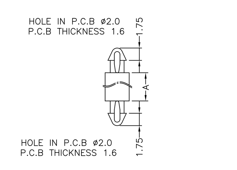 Dual locking support post. Snap lock teardrop design allows fixation into small holes. Top hole 2 mm. Bottom hole 2 mm. Length 1.6 mm.