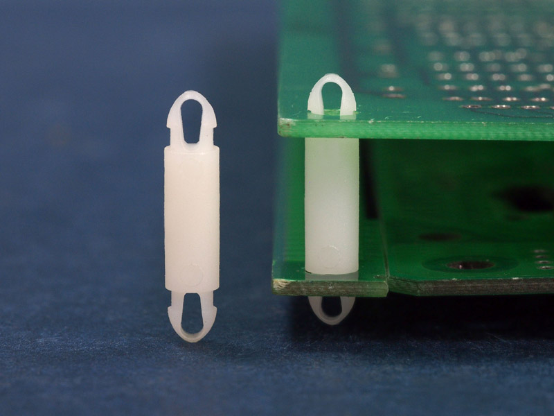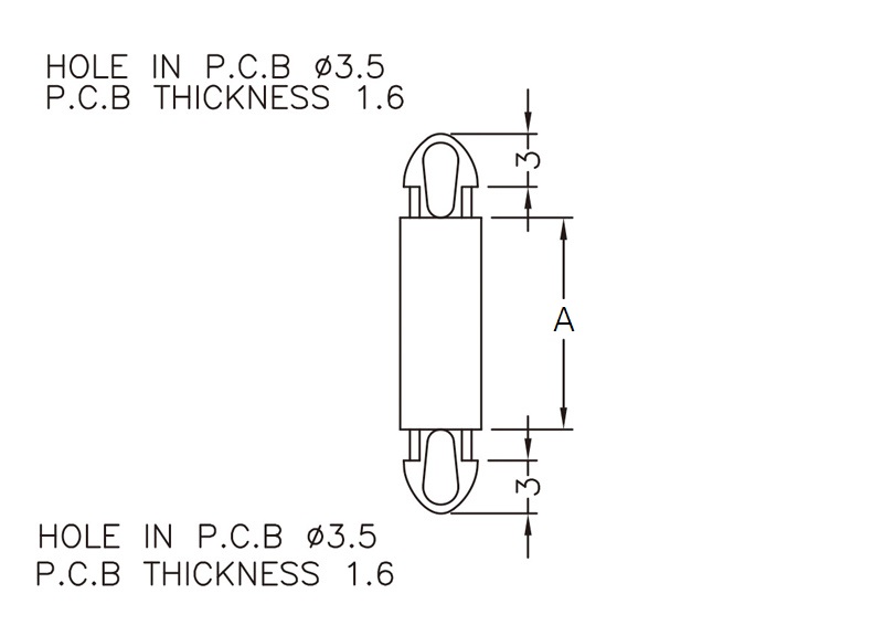 Dual locking support post. Snap lock teardrop design allows fixation into small holes. Top and bottom hole 3.5 mm. Standoff height 12 mm.