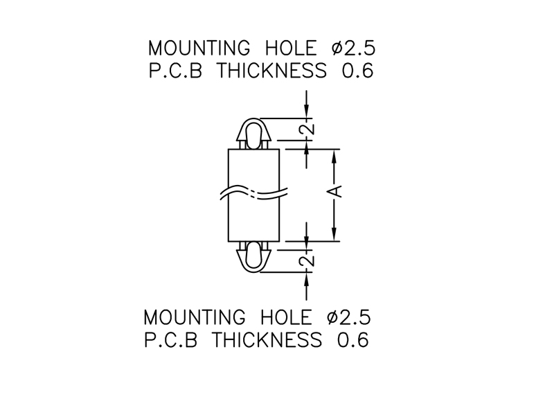 Dual locking support post. Snap lock teardrop design allows fixation into small holes. Top and bottom hole 2.5 mm. Spacer length 18 mm.