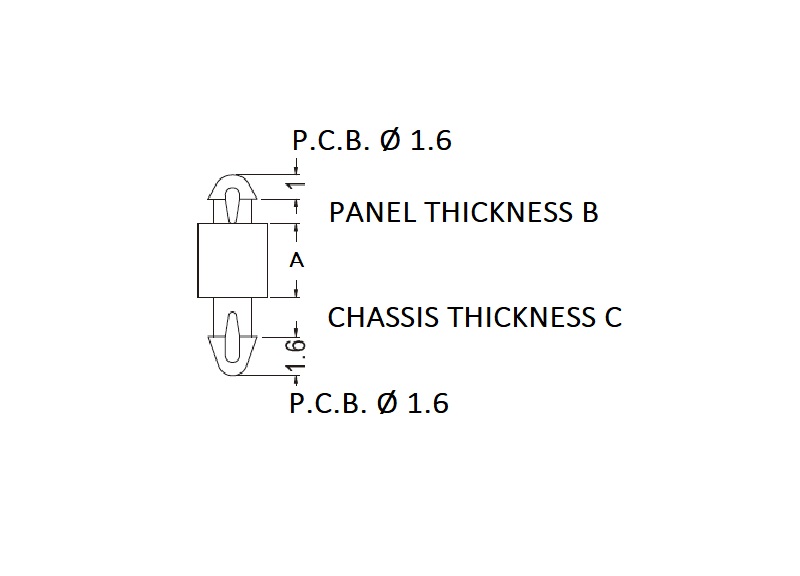Dual locking support post. Snap lock teardrop design allows fixation into small holes. Top hole 1.6 mm. Bottom hole 1.6 mm. Length 3 mm.