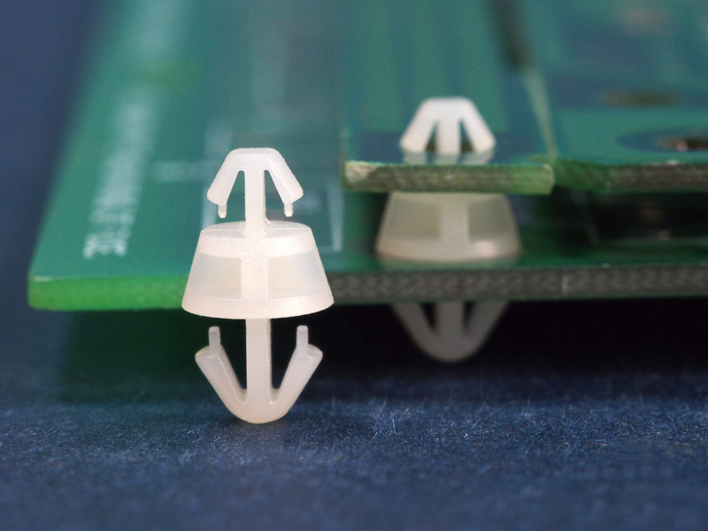 Dual snap lock support. Arrowhead design on both sides fits top hole of 3 mm and bottom hole of 4.8 mm. Standoff height is 3.5 mm.