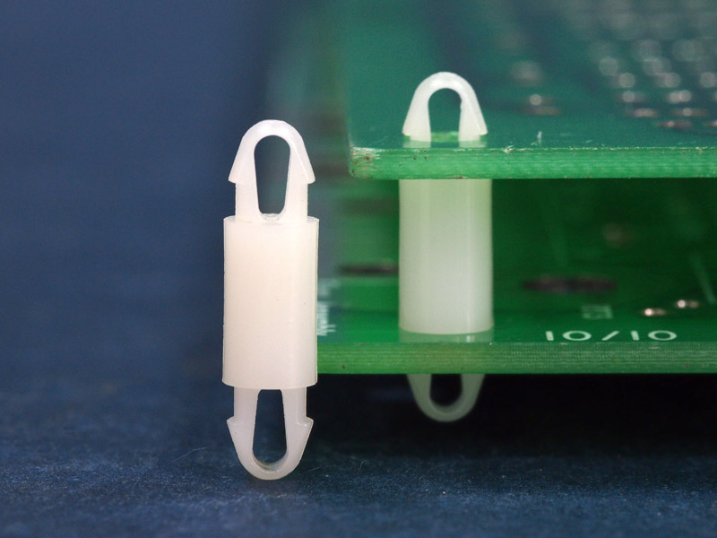 Dual locking support post. Snap lock teardrop design allows fixation into small holes. Top and bottom hole 3.5 mm. Standoff height 10 mm.