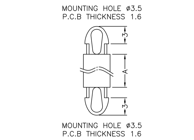 Dual locking support post. Snap lock teardrop design allows fixation into small holes. Top and bottom hole 3.5 mm. Standoff height 2 mm.