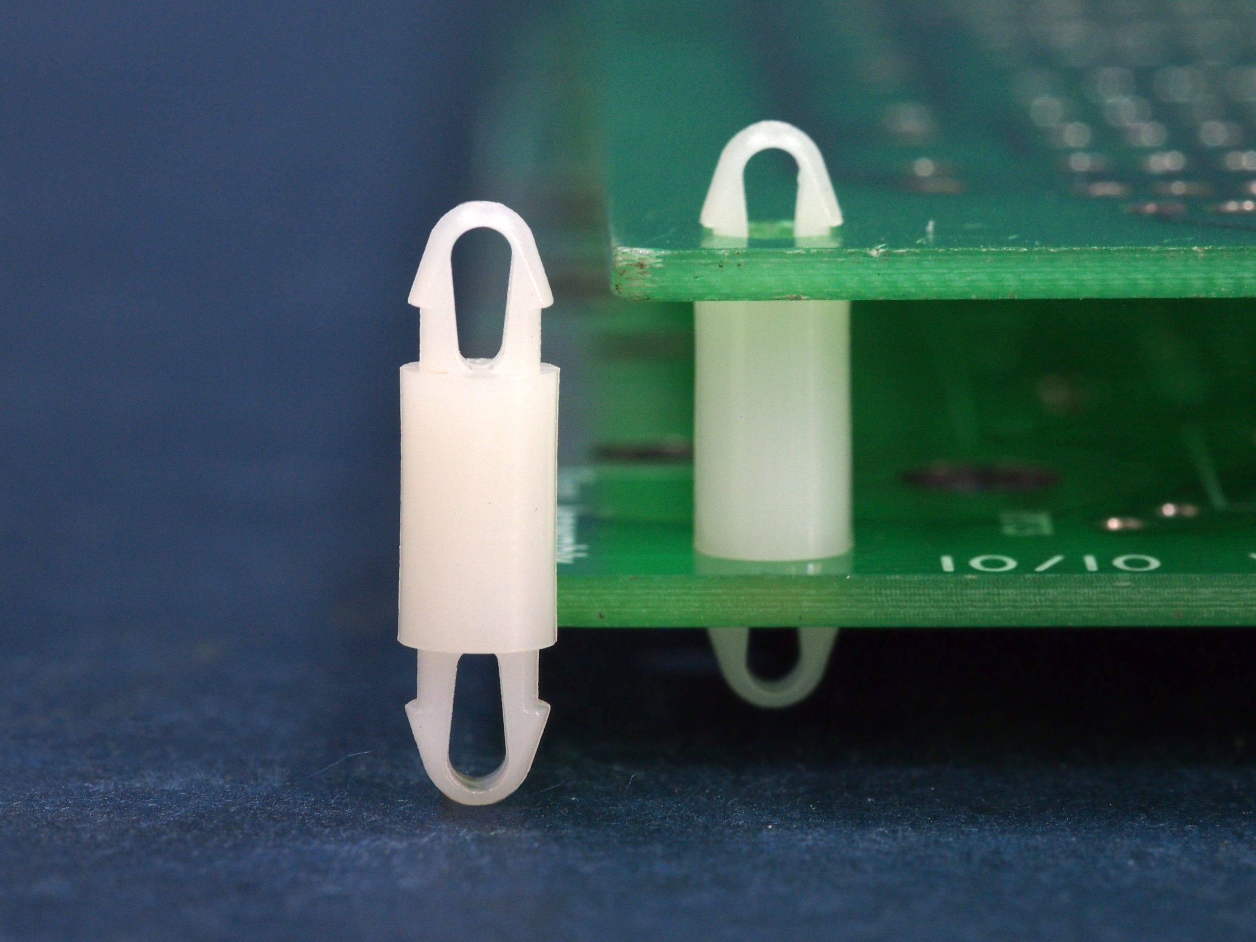 Dual locking support post. Snap lock teardrop design allows fixation into small holes. Top and bottom hole 3.5 mm. Spacer length 20 mm.