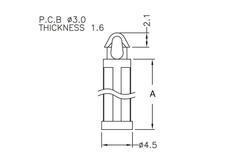 Rest support provided with a snap lock for a 2 mm mounting hole. Standoff height 33.7 mm.