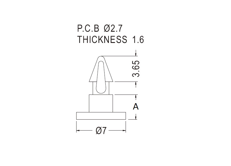 Rest support provided with a snap lock for a 2.7 mm mounting hole. Standoff height 3.5 mm.
