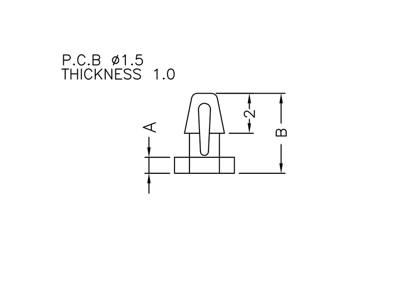 Push spacer hexagonal rest support provided with a snap lock for a 1.5 mm mounting hole. Standoff height 0.8 mm.