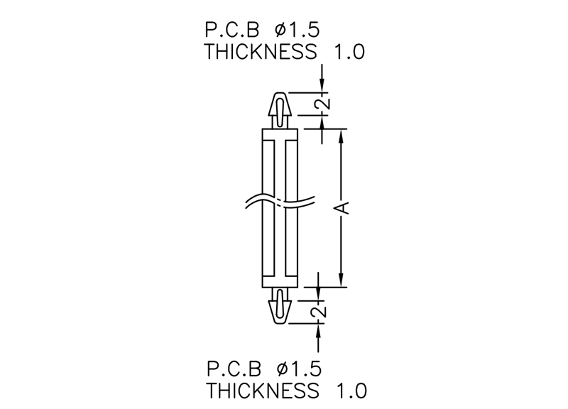 Dual locking support post. Snap lock teardrop design allows fixation into small holes. Top hole 1.5 mm. Bottom hole 1.5 mm. Length 18 mm.