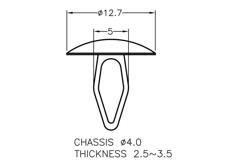 Mini Mounting Button. Material Nylon 66. Color Natural/Black. Mounting Hole Ø 4.0mm. Panel Thickness 2.5-3.5mm. Easy push-in installation with a neat finish.